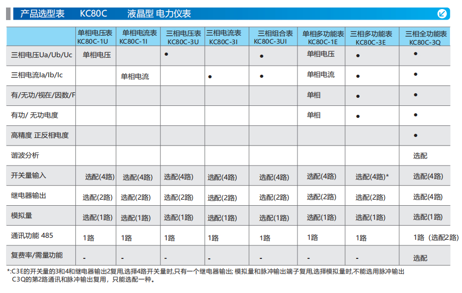 功率因数PFa/PFb/PFc | 0.5/1.0级 | 0-1L C(L表示感性C表示容性) |