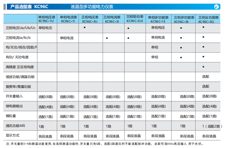 功率因数PFa/PFb/PFc | 0.5/1.0级 | 0-1L C(L表示感性C表示容性) |