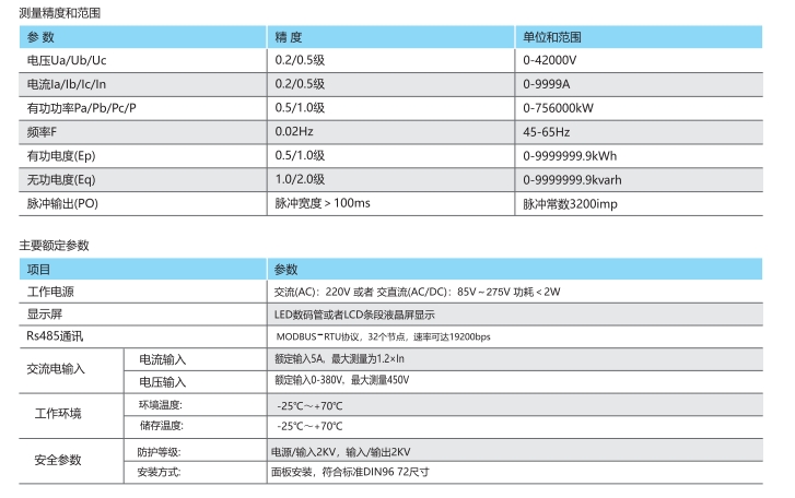 KCD系列短款数显仪表有电压、电流、功率、频率等测量,并具有计量功能,通讯功能,可用于10kV以下开关柜的进线、联络、馈线等回路