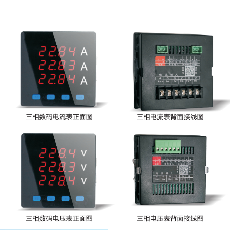 KCD系列短款数显仪表有电压、电流、功率、频率等测量,并具有计量功能,通讯功能,可用于10kV以下开关柜的进线、联络、馈线等回路.