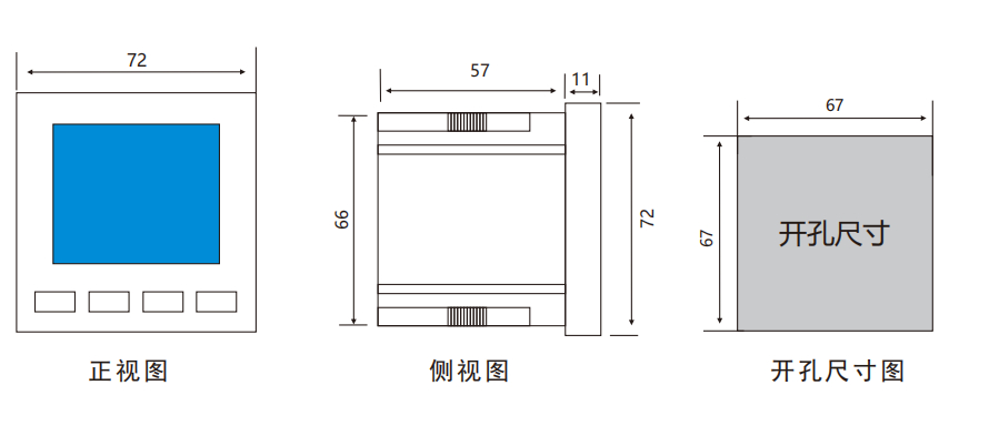 ◆标准的DIN72x72尺寸,特别适合狭小空间例如抽屉柜等安装