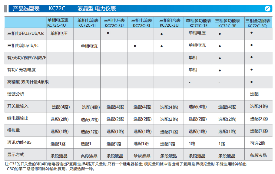 功率因数PFa/PFb/PFc | 0.5/1.0级 | 0-1L C(L表示感性C表示容性) |